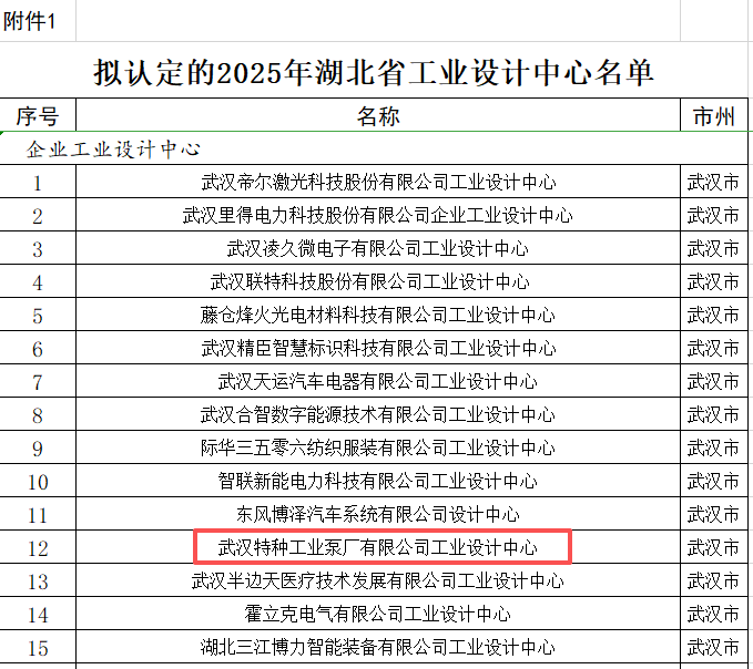 近日,湖北省經(jīng)濟和信息化廳公布了2025年度省級工業(yè)設(shè)計中心名單。武漢特種工業(yè)泵廠有限公司(后文簡稱武漢特泵)成功入選。