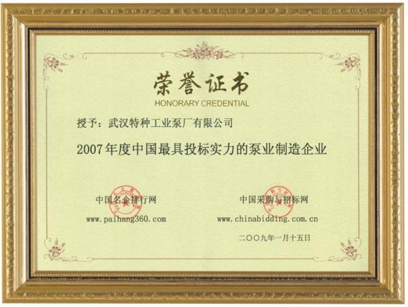 特泵榮譽(yù)