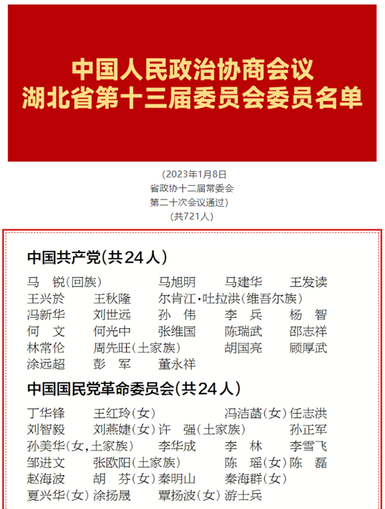 2023年1月8日,政協(xié)湖北省第十二屆委員會常務(wù)委員會第二十次會議通過了中國人民政治協(xié)商會議湖北省第十三屆委員會委員名單,武漢龍源集團有限公司、武漢特種工業(yè)泵廠有限公司董事長何正亮當(dāng)選中國人民政治協(xié)商會議湖北省第十三屆委員會委員。