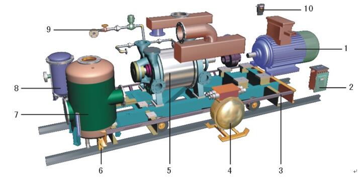 | 5 | 振動大 | 1. 機(jī)座與基礎(chǔ)接觸不良,地腳螺栓松動; 2. 對中不好; 3. 供水量不足。 | 1. 用混凝土填充底座空隙,擰緊地腳螺栓; 2. 重新對中和鎖緊; 3. 加大供水量。 |
