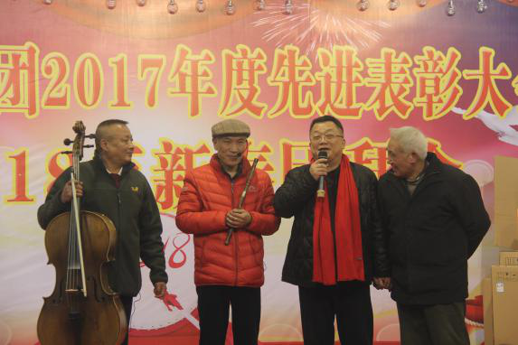 團(tuán)拜會上,由員工自編、自導(dǎo)、自演的文藝節(jié)目,引來一陣陣歡聲笑語。