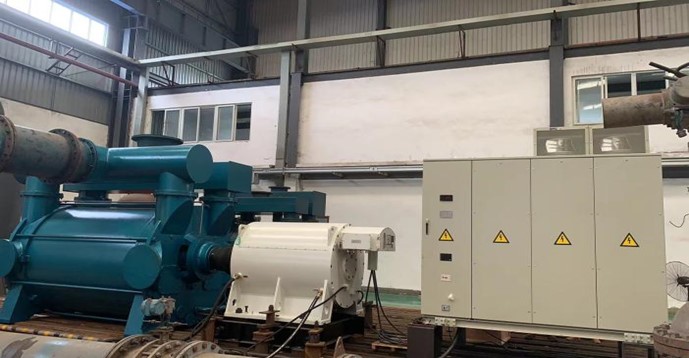 此次為河南能源新疆公司榆樹嶺礦生產(chǎn)的2BEF80水環(huán)真空泵機組,系采用更為先進的水環(huán)真空泵+礦用隔爆型永磁同步變頻電動機方式;相較傳統(tǒng)機組,省去減速機、用永磁變頻電機替代普通異步電機,其優(yōu)勢主要體現(xiàn)在:結構簡單, 可靠性高,平均效率高,溫升低,電機體積較小、重量輕,功率因數(shù)高,起動轉矩大,力能指標好,可大氣隙化,便于構成新型磁路,電樞反應小、抗過載能力強,高效節(jié)能及減少故障點。