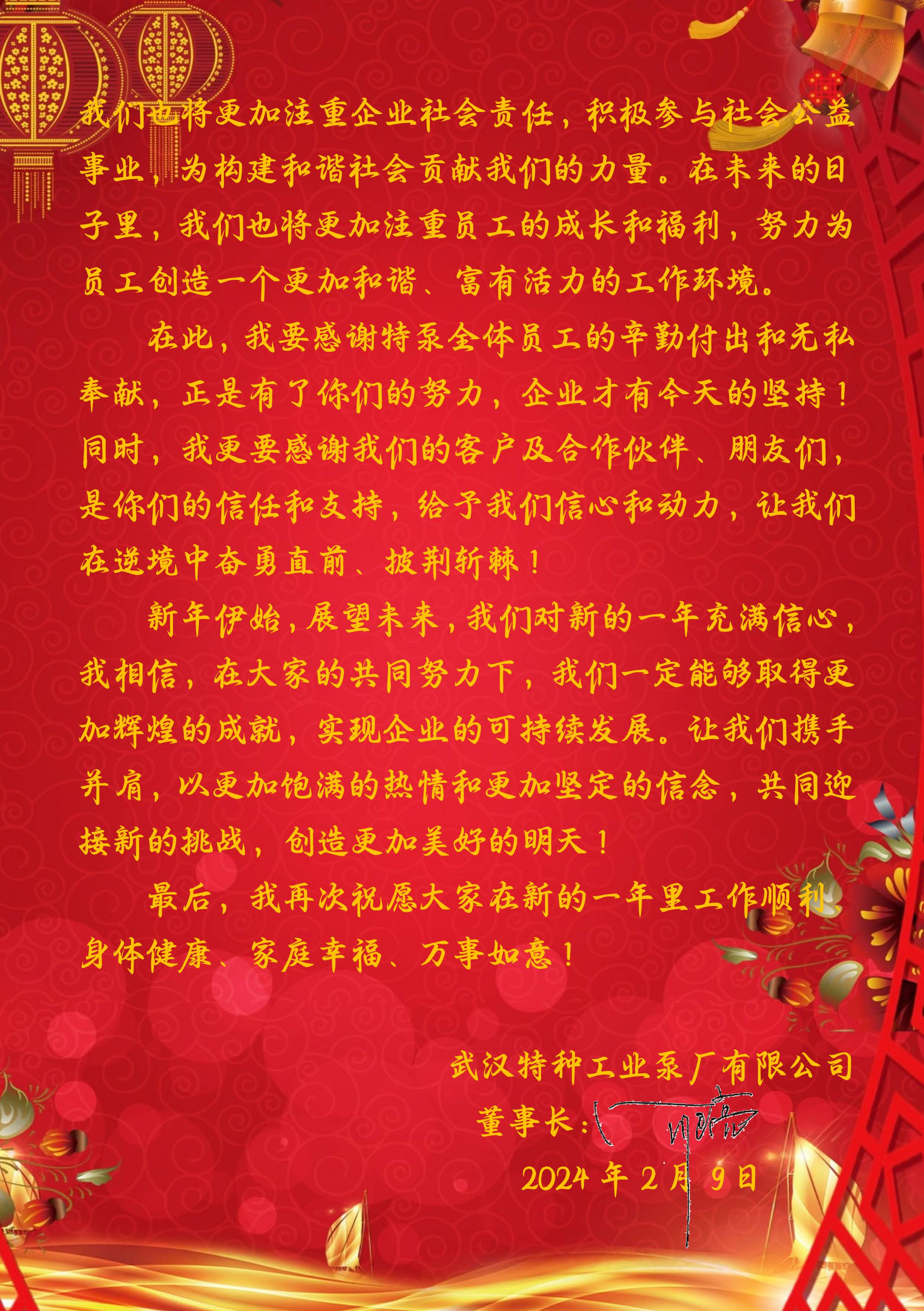 2023年是武漢特泵穩(wěn)中有進(jìn)的一年,在經(jīng)歷新冠疫情、市場波動(dòng)的持續(xù)沖擊下,全體武漢特泵人團(tuán)結(jié)奮進(jìn),取得良好業(yè)績,為下一步的發(fā)展夯實(shí)基礎(chǔ),2024年有望再創(chuàng)佳績!