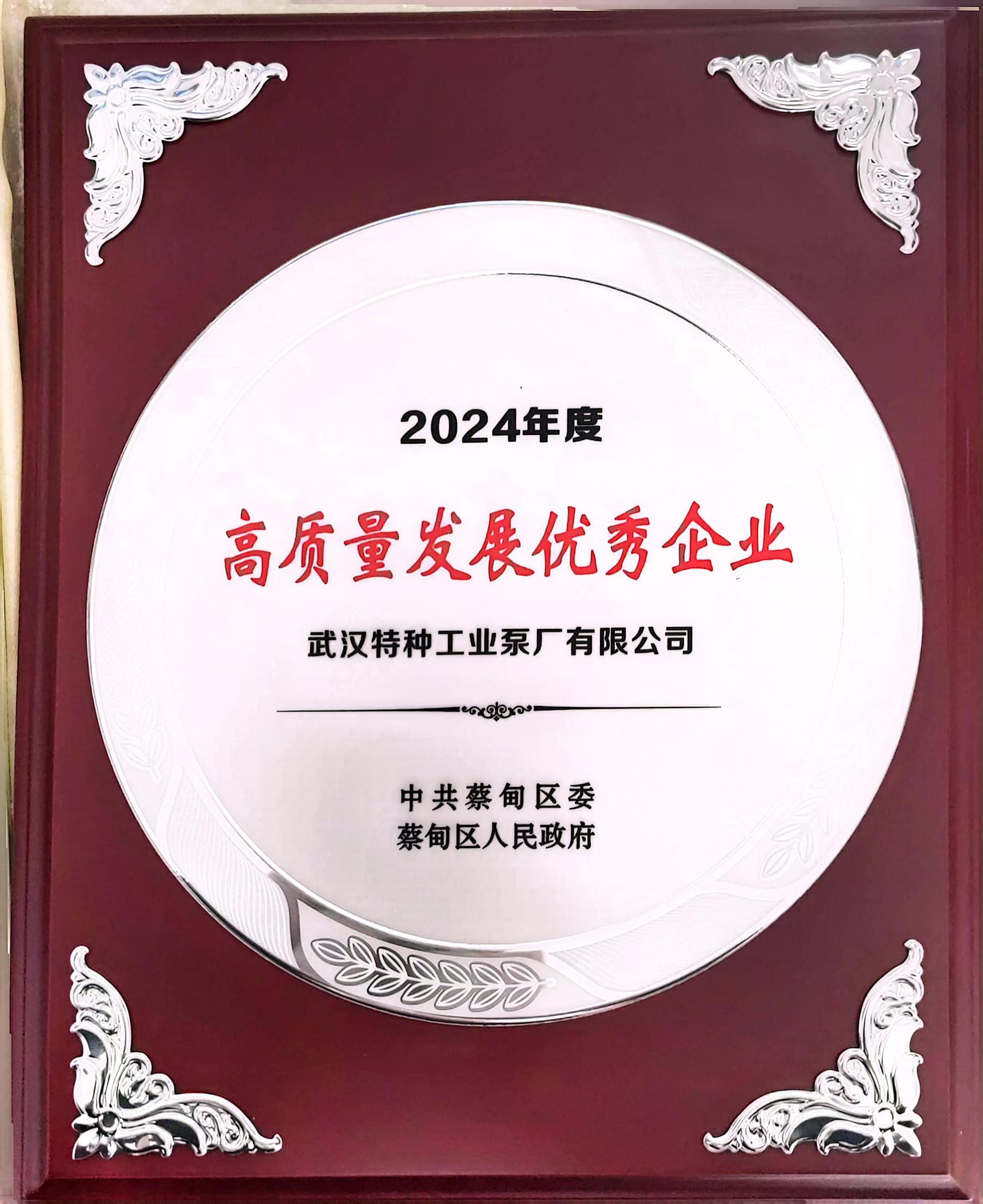 近日,中共武漢市蔡甸區(qū)委、蔡甸區(qū)人民政府對2024年度高質(zhì)量發(fā)展優(yōu)秀企業(yè)進行了通報表揚,武漢特種工業(yè)泵廠有限公司憑借在科技創(chuàng)新、產(chǎn)品升級和質(zhì)量保障等方面的突出表現(xiàn),榮獲“2024年蔡甸區(qū)高質(zhì)量發(fā)展優(yōu)秀企業(yè)”稱號。